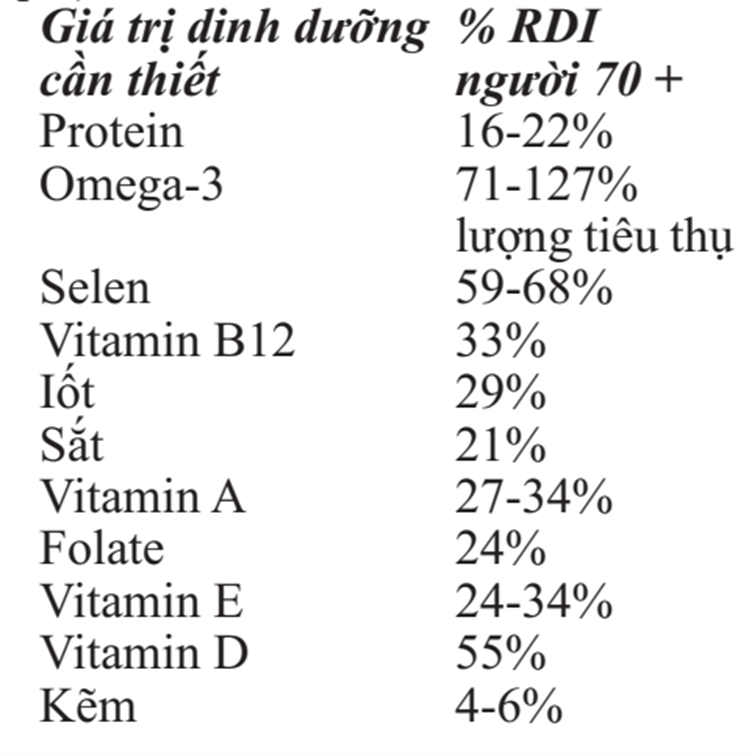 Lượng protein khuyến nghị hàng ngày (RDI) hiện tại của Úc dành cho người lớn từ 70 tuổi trở lên (81g pro- tein/ngày đối với nam và 57g đối với nữ) cao hơn khoảng 25% so với nhu cầu protein của người trẻ tuổi do nhu cầu protein tăng theo tuổi tác.