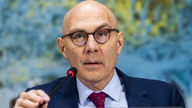 Cao ủy Nhân quyền Liên Hiệp Quốc Volker Türk (Tuerk) trình bày báo cáo cập nhật bằng lời về các phát hiện của Văn phòng Cao ủy Nhân quyền Liên Hiệp Quốc (OHCHR) liên quan đến tình hình nhân quyền tại Ukraine, trong khuôn khổ phiên đối thoại tương tác của Hội đồng Nhân quyền. Geneva, Thụy Sĩ, ngày 16 tháng 12 năm 2025. Ảnh nguồn: EPA/SALVATORE DI NOLFI Credit: Salvatore Di Nolfi/EPA