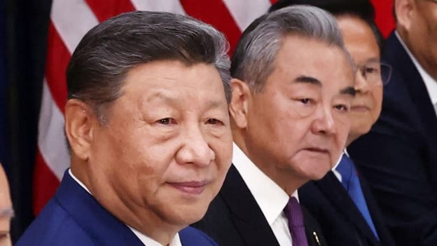 Tập Cận Bình tham dự cuộc họp với Donald Trump (người không có trong ảnh) cùng với Ngoại trưởng Trung Quốc Vương Nghị tại Sân bay Quốc tế Gimhae, bên lề hội nghị thượng đỉnh APEC, tại Busan, Hàn Quốc, vào ngày 30/10. © Reuters