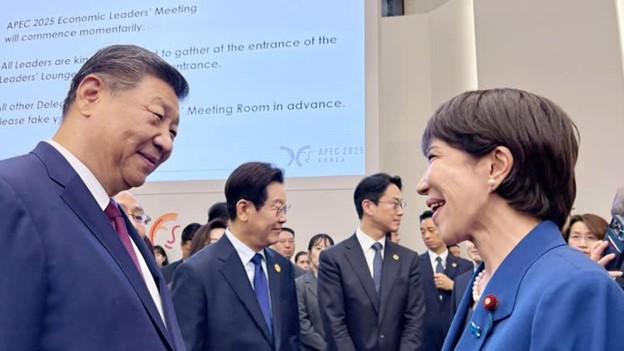 Tập và Takaichi, người vừa trở thành nữ lãnh đạo đầu tiên của Nhật Bản vào tháng 10, đã gặp nhau vào ngày 31/10 bên lề hội nghị thượng đỉnh Hợp tác Kinh tế Châu Á-Thái Bình Dương APEC tại Gyeongju.