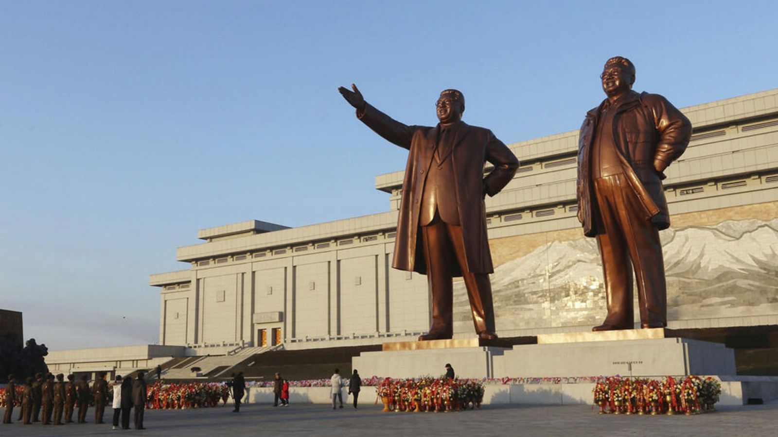 Người dân Bình Nhưỡng bày tỏ lòng kính trọng trước các bức tượng của cố lãnh đạo Bắc Triều Tiên Kim Nhật Thành và Kim Jong Il trên đồi Mansu vào Ngày đầu năm mới tại Bình Nhưỡng, ngày 1 tháng 1 năm 2025. AP - Cha Song Ho