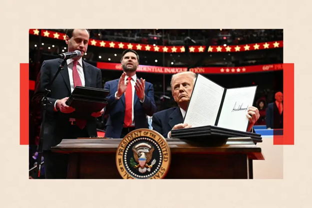 Ngay trong ngày đầu tiên trở lại nhiệm sở, ông Trump đã sử dụng cây bút dạ đặc trưng của mình để rút Mỹ khỏi Thỏa thuận Paris về khí hậu – hiệp ước Liên Hợp Quốc năm 2015, theo đó các quốc gia đồng ý hợp tác nhằm cố gắng giữ mức tăng nhiệt độ toàn cầu dưới 1,5 độ C.