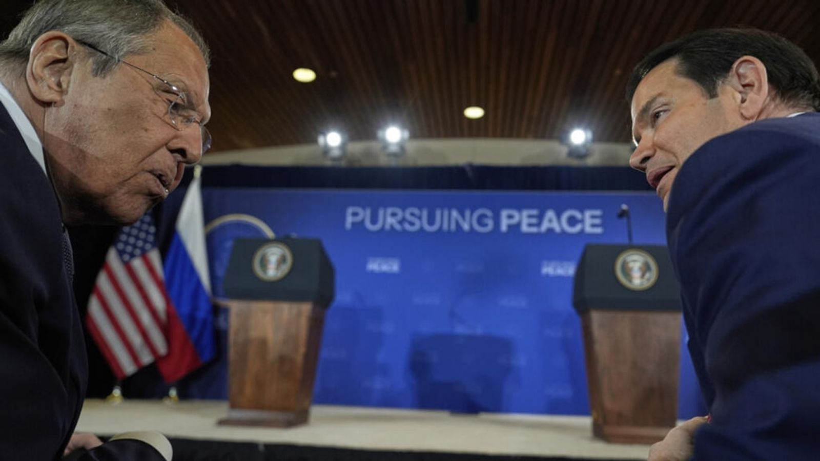 Hình tư liệu: Ngoại trưởng Nga Serguei Lavrov (bên trái) và đồng nhiệm Mỹ Marco Rubio, trao đổi với nhau nhân cuộc gặp thượng đỉnh Putin-Trump, tại Alaska, Hoa Kỳ, ngày 15/08/2025. © Julia Demaree Nikhinson / AP