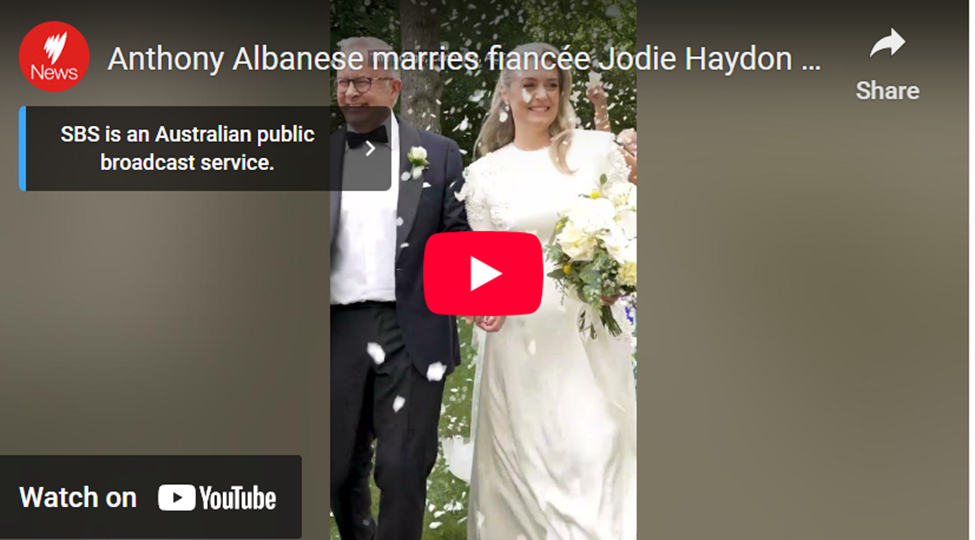 Thủ tướng Anthony Albanese đã kết hôn với vị hôn thê Jodie Haydon tại dinh thủ tướng ở Canberra, The Lodge. Buổi lễ nhỏ mang tính riêng tư, chỉ có gia đình và bạn bè thân thiết tham dự vào chiều thứ Bảy, đã được giữ kín cho đến khi hoàn tất.