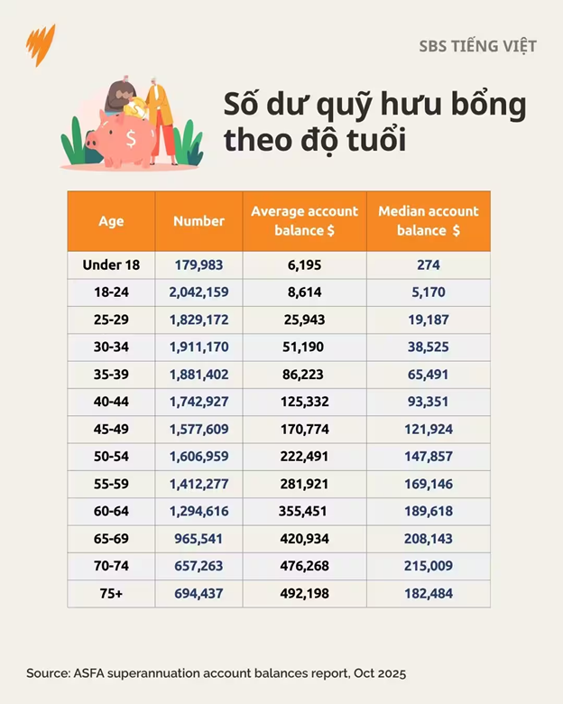 Người Úc hiện có trung bình hơn 172,000 đô-la trong tài khoản hưu bổng - superannuation. Đây là một cột mốc mới cho thấy mức tiết kiệm nghỉ hưu đang tăng, dù tốc độ vẫn còn khá chậm với một số người.