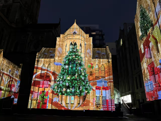 Từ 8 giờ tối đến nửa đêm trong khung thời gian 27/11 – 26/12, mặt tiền của Sydney Town Hall sẽ được chiếu sáng bằng các hình ảnh hoạt họa kỹ thuật số quy mô lớn, tái hiện tinh thần Giáng Sinh mang dấu ấn Úc: hiện đại, ấm áp và mãn nhãn.