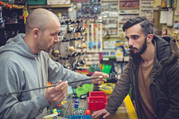 Một người đang mua cần câu trong một cửa tiệm: Ảnh: aywan88/Getty Images