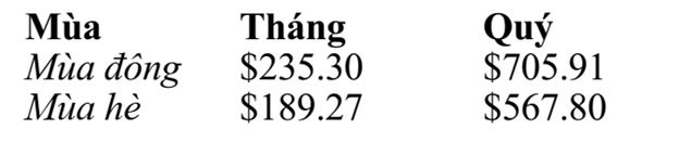 Hóa đơn tiền điện trung bình hàng tháng / từng quý theo mùa của một gia đình Úc được ghi nhận như sau: