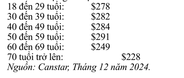 Hóa đơn tiền điện trung bình theo quý và theo nhóm tuổi được ghi nhận như sau: