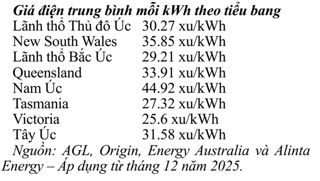 Tại Úc, hóa đơn tiền điện trung bình hàng quý vào mùa đông của 1 hộ gia đình có thể vào khoảng $705, trong khi mùa hè trung bình vào khoảng $567.